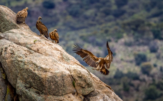 Après un petit déjeuner copieux dans un cadre convivial que nous partagerons ensemble, direction les Gorges du Tage et ses falaises afin de voir et saisir des instants d’exception avec les vautours dans le cadre de leurs déplacements (envolées, ascensions, atterrissages).