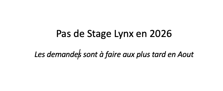Cette réservation de logement pour le stage Lynx est pré-reservé jusqu’a Septembre, après cela le stage ne pourra avoir lieu.